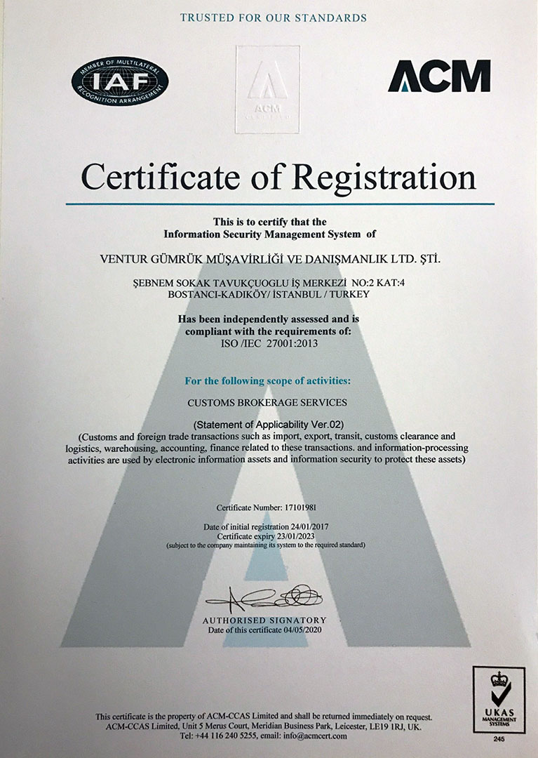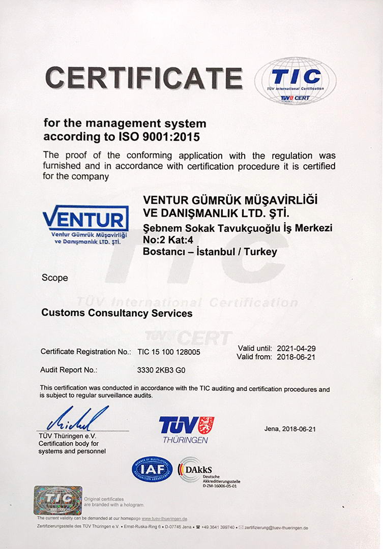 5 şubat 2000 yılında yürürlüğe giren 4458 sayılı Gümrük Kanunu’nun 229. Maddesi Hükümlerine göre kurulmuş Gümrük Müşavirliği Tüzel Kişiliğe sahip Ventur Gümrük Müşavirliği ve Danışmanlık Ltd. Şirketi Gümrük ve Ticaret Bakanlığı tarafından verilen izin belgesi ile tüm Gümrük İdarelerinde; Gümrük Müşavirlerinin yönetiminde, Gümrük Müşavir Yardımcıları ve konusunda eğitimli, deneyimli kadrosu ile Gümrük Müşavirliği hizmetini sürdürmektedir. Günümüzün etkin bilişim teknolojileri alt yapısına sahip, yeniden yapılanmasını tamamlamış kusursuz Gümrük Müşavirliği ve Dış Ticaret Danışmanlığı Hizmeti üretmeyi hedef edinmiştir.